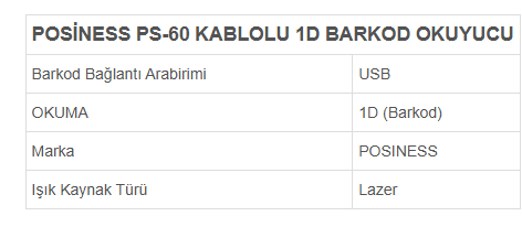 POSİNESS PS-60 KABLOLU 1D BARKOD OKUYUCU
